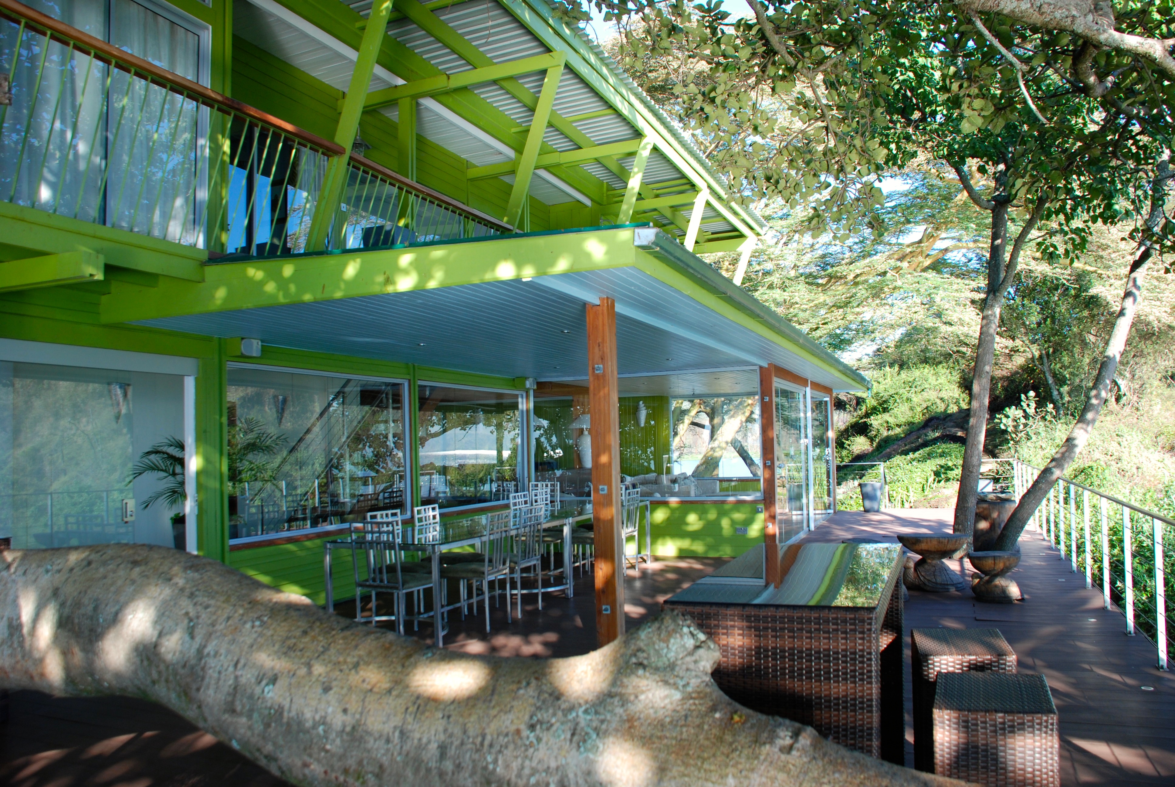 Upstairs there are four ensuite bedrooms, each uniquely furnished for your ultimate comfort. The annex, a short walk from the main house, has two en-suite bedrooms with spectacular views of the lake. The floating decks in the garden have an en-suite guide tent and a gym and spa.